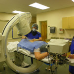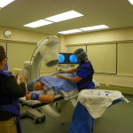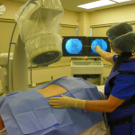 - The C-arm fluoroscopy is used to guide a needle to a specific area while watching that needle on a live x-ray screen.